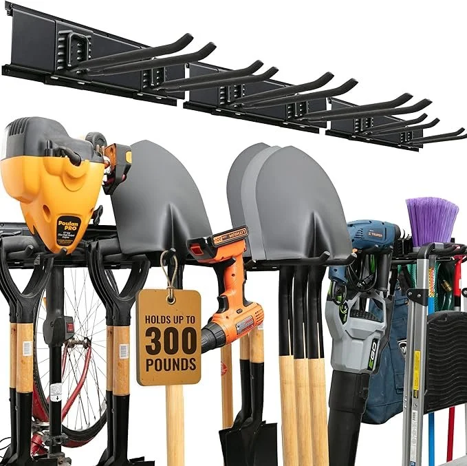 Whether you're storing rakes, shovels, power tools, or just cleaning up the chaos, this rack makes it easy to get organized. The adjustable hooks let you set things up exactly how you want, and the solid carbon steel constructionmeans it won’t sag, bend, or rust on you.