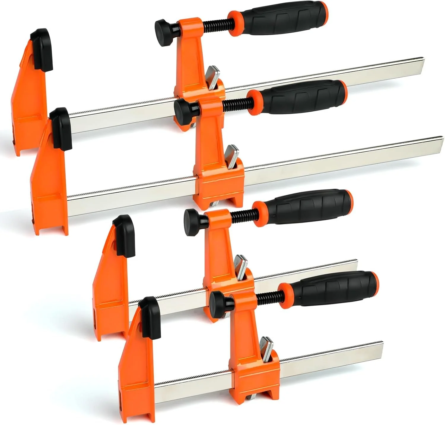 You’re getting two 12 inch clamps and two 6 inch clamps, all with up to 600 lbs of holding power. These are the kind of clamps that help you work faster, safer, and more accurately — especially in solo projects where an extra hand is hard to come by.