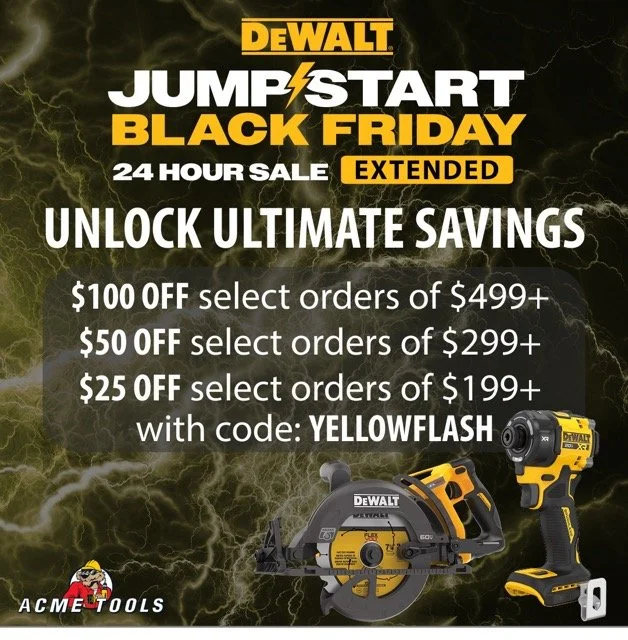 Use Code: YELLOWFLASH at checkout β Save $25, $50, or $100 on select DEWALT orders.