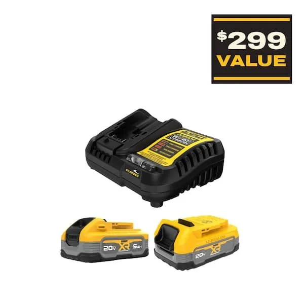 Includes one 5.0Ah XR POWERSTACK battery, one 1.7Ah POWERSTACK battery, and one charger