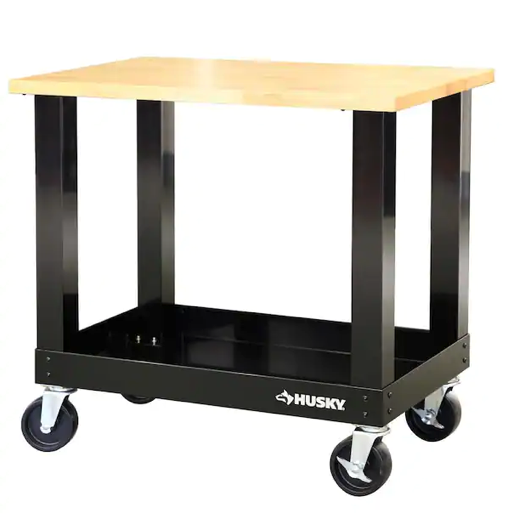 Get portable workspace and storage with this Husky 3-ft. workbench. The solid wood top holds up to 600 lbs., and the bottom tray supports up to 80 lbs. For easy moving, it includes four 360-degree swivel casters. You can assemble this workbench quickly with included tools.