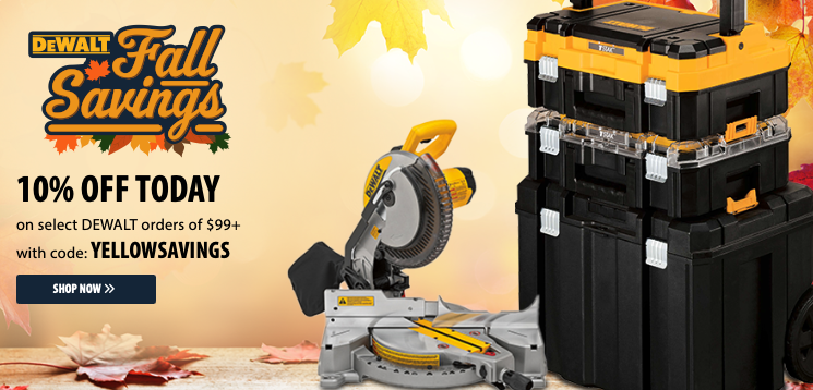 💥 Shop DEWALT and Save 10% with Code YELLOWSAVINGS